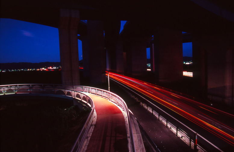 夜のジャンクション。流れる光跡。交錯する光の帯。光の幻想。