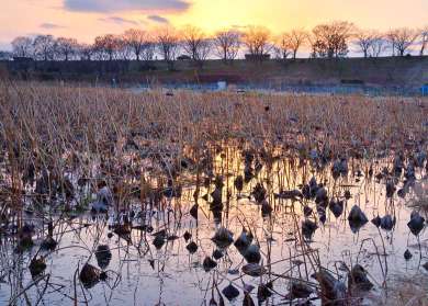 「枯れる蓮田」